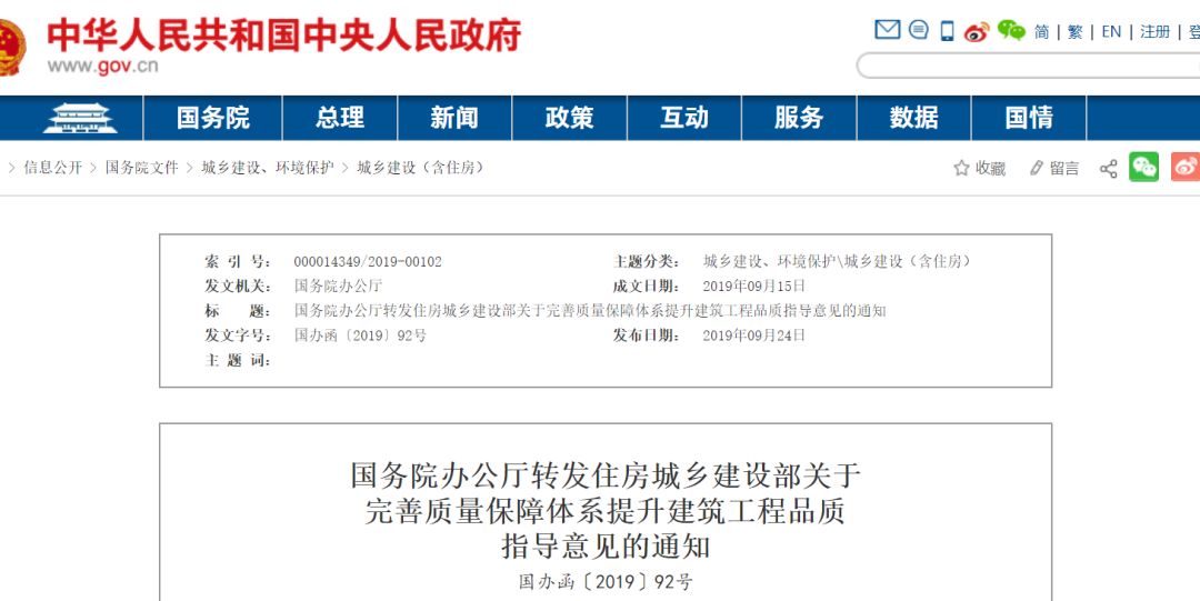 关于完善质量保障体系提升建筑工程品质的指导意见