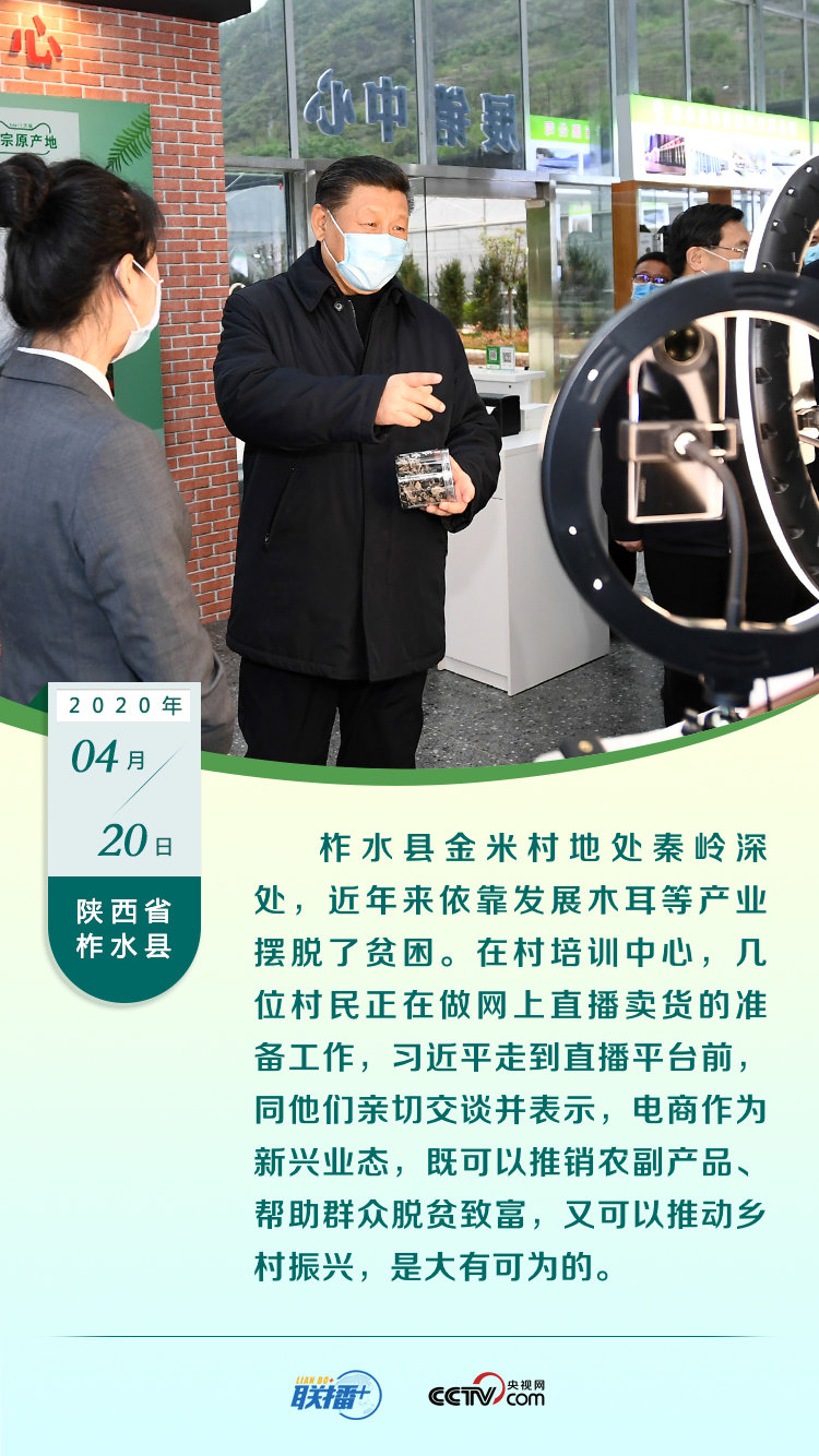 联播+ 4月20日至23日,习近平总书记在陕西考察。在柞水县小岭镇金米村,习近平站在网络直播平台前为老乡“带货”;在老县镇蒋家坪村的茶园里,他叮嘱茶农把茶叶这个产业做好。这些生动的细节的背后,正是总书记关切的扶贫大战略。