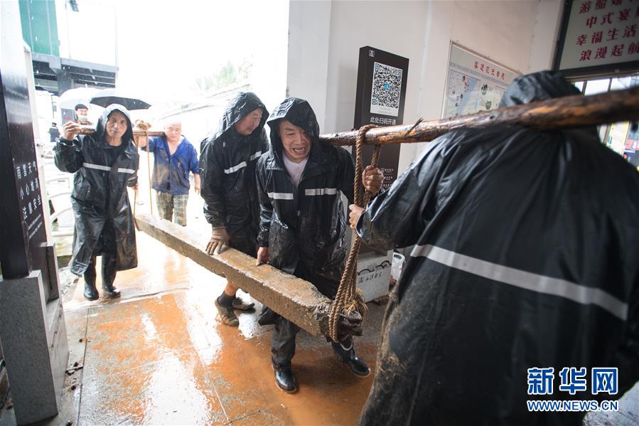 7月6日,工作人员在武汉龙王庙封堵闸口。新华社记者 肖艺九 摄