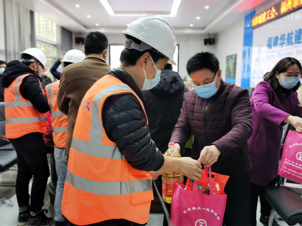 随后,慰问组为项目部一线职工送上春节慰问品,鼓励职工们继续坚守岗位、努力工作,并提前祝愿大家度过一个欢乐、祥和、平安的节日。职工们接过慰问品,纷纷表示非常感谢上级党委、工会、协会的关心,将会为建造精品工程、创造更加优美的城乡环境做出自己的积极贡献。